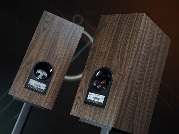 Az előlapon, alul elhelyezett reflexnyílás is megmaradt, a pereme természetesen le van kerekítve, hogy simább és egyenletesebb legyen a hangok terjedése. A Chora 806 összesen három kivitelben, világos és sötét fa, valamint fekete színben kapható, ezekhez a színekhez illeszkedik a hangszórókat és a reflexportot is körbeölelő díszítőelem.