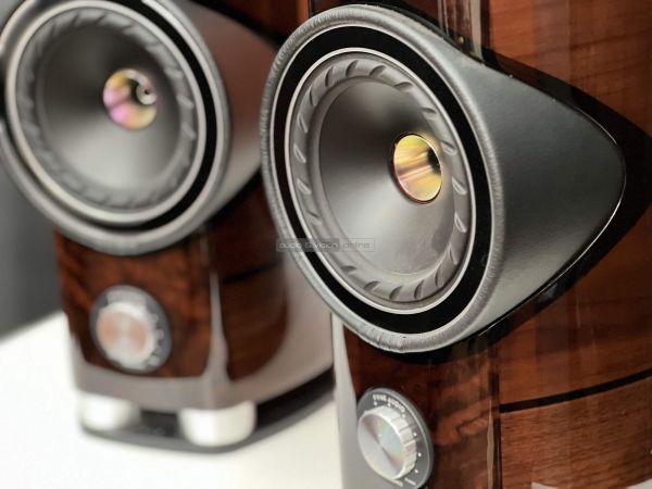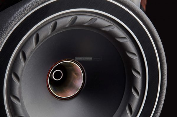 Kicsit most merüljünk bele a részletekbe, hiszen a gyártó ezen sorozatának eddig egy tagjával sem volt lehetőségünk megismerkedni! A központi elem ezúttal is a jellegzetes, IsoFlare elnevezésű pontforrás hangszóró, ami együttesen nyújtja a teljes hangtartományt. A hang egyetlen pontból jön létre, ami megőrzi az összetett szerzemények harmonikus szerkezetét, és jobban pozícionálható. A 125 mm-es, alumínium öntvénykosaras IsoFlare hangszóróhoz egy dupla mágnest illesztettek. FyneFlute nevű gumipereme a gyártó egyik jellegzetessége. A nagy teljesítményű, alumínium lengőtekercset tiszta rézből előállított rövidrezáró gyűrűvel látták el. A 19 mm-es, kompressziós, magnézium dóm magassugárzó hullámvezetője számítógéppel optimalizált geometriájú, hogy a lineáris terjedést és a lehető legsimább frekvencia-átvitelt biztosítsa. E mellett hatékonyan kezeli a membrán energiáját az aktuális hangerőtől függetlenül, az A szabadalmaztatás alatt álló BassTrax LF diffúzor-rendszert itt is alkalmazták. Ez az összetett, mégis kifinomult megoldás hangolt hullámvezető nyílással rendelkezik, ami a doboz megerősített alsó paneljéből nyílik, és egy stabil fém talapzatban végződik. Ez a terhelési technika csillapítórendszerként is működik, hiszen blokkolja a fő belső nyílás által keltett potenciális állóhullám keltette rezonanciákat. Az egyedülálló, matematikailag levezetett profil valódi 90 fokos szöget tart fenn a hullámfront minden metszéspontjában, így a sima hullám LF energiáját vízszintesen táguló, gömb alakú, 360 fokos hullámfronttá alakítja teljesen energiaveszteség nélkül. Ezeket a hullámvezetőket eredetileg a Voight alkalmazta tölcséres hangfalaknál az 1920-as években, manapság ez a megoldás szintén egyedülálló a Fyne Audio-nál.