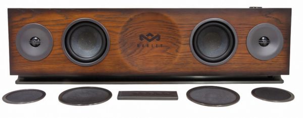 A House of Marley One Foundation a megszokottnál jobb és nagyobb hangot ígér. Ezt sugallja a nagy méret, a vastag fa előlap, a beígért 220 wattos teljesítmény, a kétutas, négy hangszórós kialakítás, amit büszkén meg is mutat a gyártó. A dán tervezésű selyem dóm magassugárzó farost erősítésű mély/középsugárzó is bíztató. Na és amint megpillantjuk a dobozt, amiben a szerkezet lapul, bizony egy picit megtorpan az ember. Ebben egy kisebb álló hangfal is elférne. Kicsomagolva sem kell csalódnunk, vaskos, nehéz rendszert rejt a karton és újrahasznosított papír csomagolás.