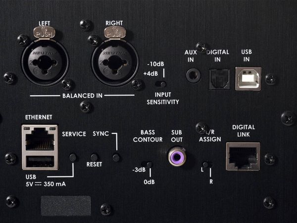 Az egyik hangfal tartalmazza a vezérlésre szolgáló és bemeneteket tartalmazó elektronikát. Rajta sorakoznak az XLR csatlakozók, Jack bemenet, optikai, és számítógépes USB aljzatok. A helyi hálózathoz WiFi, vagy hagyományos Ethernet port segítségével lehet csatlakozni. A jobb és bal oldal Digital Link nevű kapcsolattal kommunikál, ami vezeték nélkül, vagy CATe-nél újabb, legfeljebb 6 méter hosszú Ethernet kábellel valósulhat meg. Említést érdemel még egy aktív mélysugárzó kimenet is azoknak, akik még több basszust szeretnének. A felhasználó fizikai kapcsolóval döntheti el, hogy melyik doboz legyen a bal/jobb oldali. Jól jön az ilyen funkció, ha valamelyik oldalhoz közelebb helyezkednek el a forráseszközök.