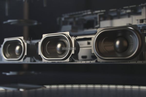 A JBL Bar 5.0 MultiBeam soundbar egyik legnagyobb újítása ugyanis a virtuális Dolby Atmos kompatibilitás, így naivan azt hihetnénk, hogy magasba kiabáló Atmos hangszórók találhatóak alatta, de ebben bizony csalódtunk. A JBL, illetve a Harman Kardon már hosszú ideje igen eredményesen alkalmazza a reflex rendszerek helyett, a passzív radiátorokat. Aki hallott már életében egy Harman Kardon Onyx Studio, vagy egy JBL Boombox hangszórót, az tudja, hogy a fizika törvényit olykor semmibe vevő basszusokat préselnek ki akkora hangszórókból, mint egy cipősdoboz, vagy éppen retikül. Miért ne működhetne egy soundbar-ban is?
