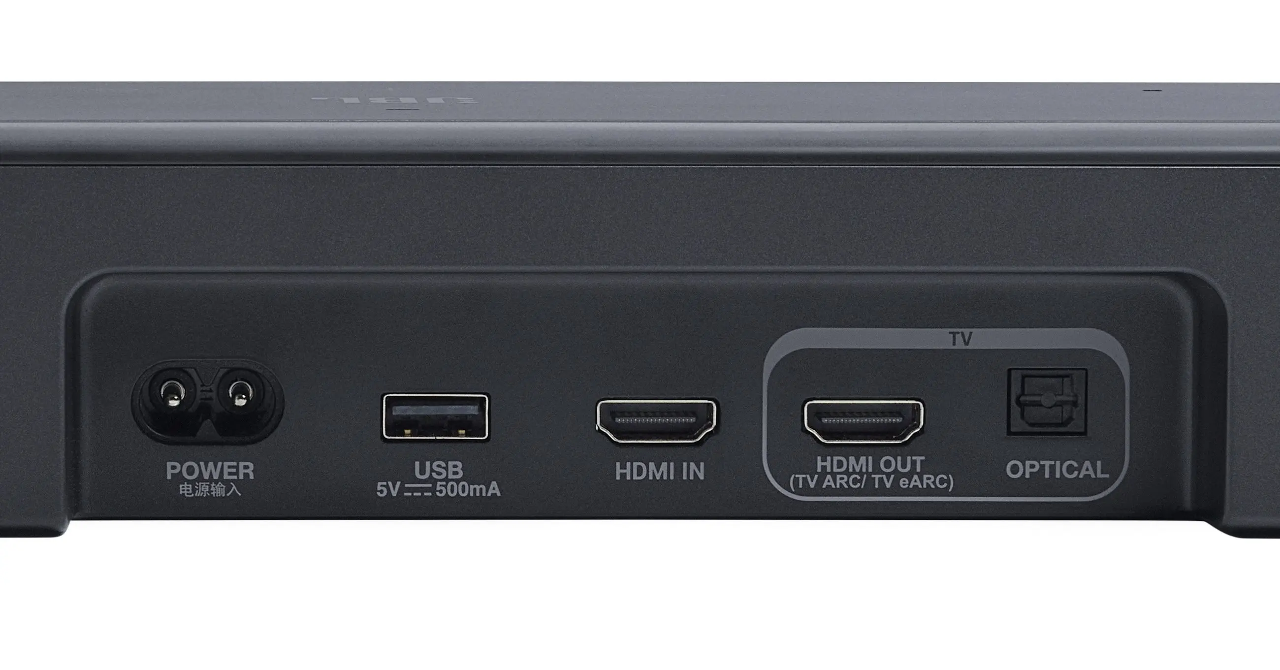 Bemenetekből 2 db HDMI (az egyik HDMI eARC), optikai és USB-A (csak szervíz célokra) áll a rendelkezésünkre, valamint ismét kapunk egy "borotvacsatlakozót" az áramfelvételhez. A kivitel egyébként a kategóriájában abszolút rendben van, a megjelenés is klappol, pedig továbbra is klasszikus, megszokott soundbar formát kapunk, de legalább válogatás nélkül jól mutat bármilyen tévé-készülék alatt.