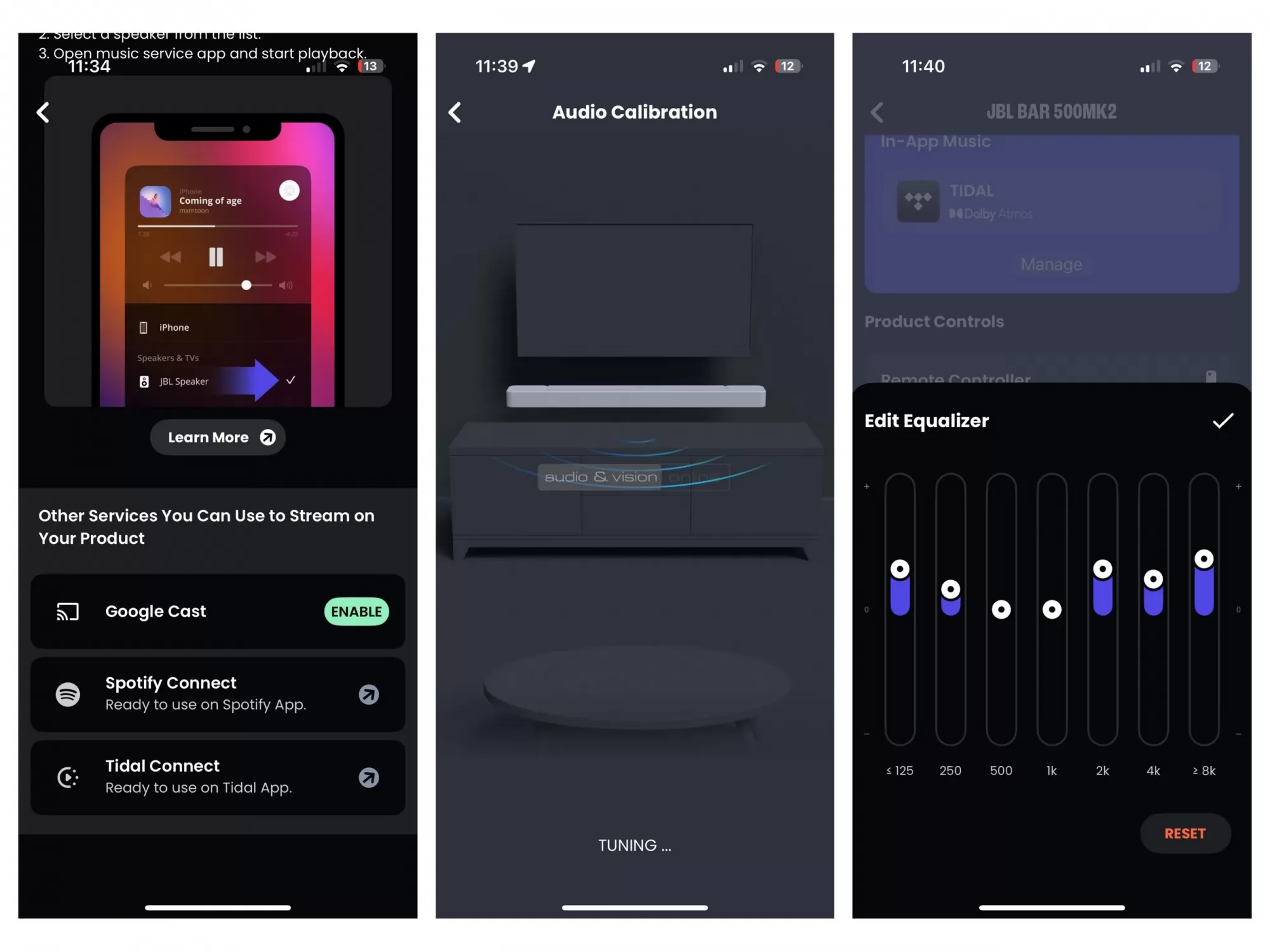 Itt sem maradt ki a Dolby Atmos 3D, a térhatást nyújtó MultiBeam 3.0, a JBL által fejlesztett SmartDetails hangzásjavító technológia a részletekért, a PureVoice 2.0 a párbeszédek tisztaságának érdekében, a kalibráció, ami felméri a terepet a szobában, a JBL One alkalmazás a finomhangolásért és vezérlésért, valamint az 5.3 verziójú Bluetooth kapcsolat, és ne feledkezzünk meg a pluszba beiktatott Roon Ready-ről, a Google Cast, Spotify Connect, TIDAL Connect és AirPlay streaming lehetőségekről.