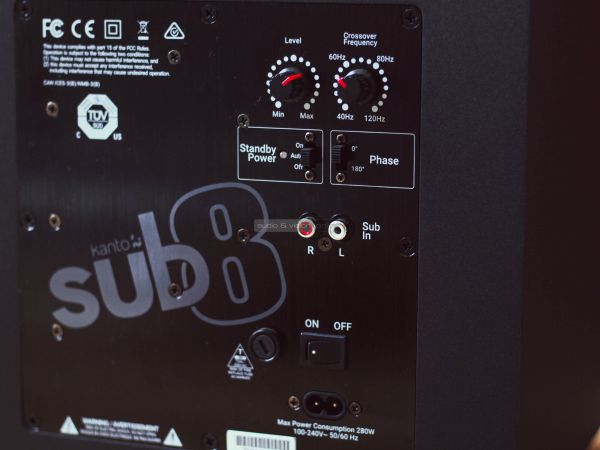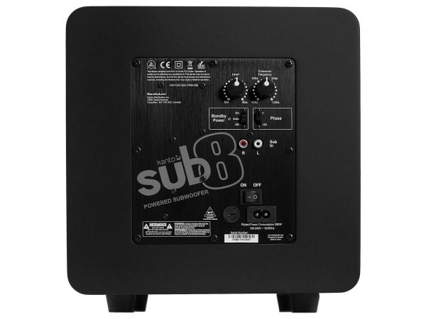 A Kanto SUB8 képességeihez nem mellékelt a gyártója gyanúsan fennhéjázó ígéreteket. Aktív mélysugárzó viszonylatban viszonylag kisméretűnek számít, doboza és 20 cm-es, papír membrános hangszórója is. D osztályú erősítőt tartalmaz, 125 W folyamatos és 250 W rövid időre biztosítható csúcsteljesítménnyel. Frekvencia-átvitele 35 Hz-től 175 Hz-ig tart. Ára e sorok írásakor 120 000 forint. Az összkép realista, nem sejteti, hogy megtáncoltatja a konyhaszekrényben porosodó borospoharakat. Nem is arra készült.