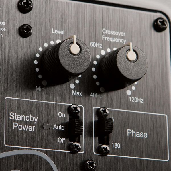 A mélysugárzó hátulján jelszint (hangerő) vezérlésre és alul-áteresztő szűrő hangolásra is van lehetőség. Utóbbi 40-től 120 Hz-ig változtatható. Ezeken kívül még egy fáziskapcsolót tartalmaz a Kanto SUB8 hátlapja. Az összkép meglehetősen egyszerű, de mi kéne még egy belépőszintű mélysugárzóra? Az olvasóban felmerülhet a kérdés, hogy rendelkezik-e automatikus jelérzékeléssel a SUB8. Igen, ha kap jelet, bekapcsol, huzamosabb üresjárat esetén pedig készenléti állapotba lép az elektronika. A hátsó főkapcsoló nem csak "ki" és "be" állást, hanem köztes "auto" üzemmódot is kínál, azzal érhető el az automatikus jelérzékelés.
