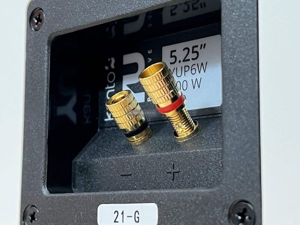 Az alkalmazott hangszórók változatlanok maradtak, tehát itt is a 133 mm-es, kevlár membrános mélyközépsugárzót, és a 25 mm-es selyem dóm magassugárzót alkalmazták, hátul pedig egy öblös, és elég méretes reflexnyílást, aminek pereme le van kerekítve, ahogy illik, a mélysége pedig megfelelő ahhoz, hogy a mélytartományt kellően segítse. Csatlakozókból egy párat találunk, de ebben a kategóriában még nem igazán szokták alkalmazni a dupla erősítést. Halkan hozzátesszük, hogy magasabb árfekvésben sem, és ha ott beválik, akkor itt is bőven elég lehet.