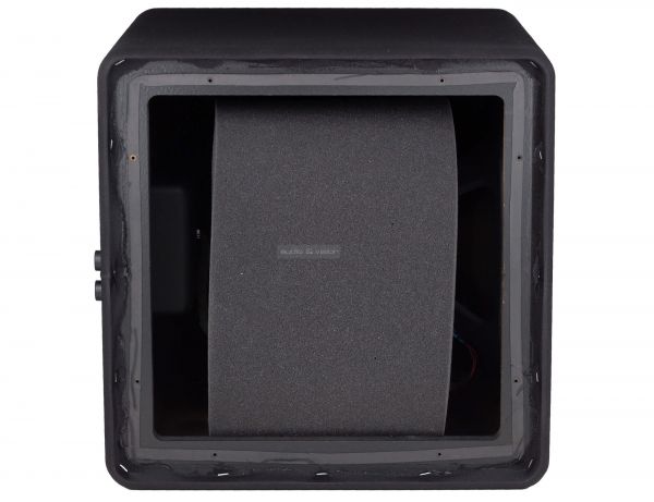 A Kube 12b nem néz ki mélyládának, inkább ülőalkalmatosságnak, úgynevezett puffnak, amit a sötét színű műanyag tetőlap cáfol, de arra párnát téve máris szinte felkínálja magát: gyere, ülj rám, meglátod, kényelmes lesz! Miért? Talán a képeken látszik, de elmeséljük. Függőleges éleinek lekerekítése nem rendkívüli, ám az oldallapok szövetborítása meglehetősen rendhagyó. Csak a hátlapról lehet funkciójára következtetni, mivel az erősítő fémlapját és a rajta lévő csatlakozókat, kezelőszerveket szerencsére nem rejtették el.