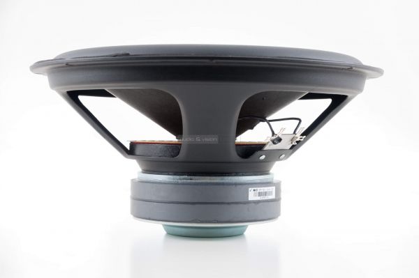A hangszóró kosara teljesen átlagos, de elég masszív, annak ellenére, hogy sajtolt lemezből készült. Mágnese dupla, pólusvasának furata méretes, a vezetékezése vicc kategória, talán még 0,75 négyzetmilliméteres sincs. A sarus csatlakozók utáni részt nem szőtték bele a pillébe, ahogy azt néhány konkurensén láttuk, szabadon fityegve haladnak a membránig, ami főként az alsó kategóriákban gyakori megoldás.