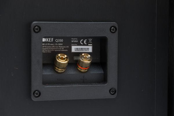 Nálunk utóbbi vendégeskedett, melynek felülete szálcsiszolt hatású, hasonlóan a Klipsch RP szériás hangfalaihoz. Az embléma elhelyezése diszkrétebb, egyúttal mutatósabb is, mivel a tetőlap éléből áll ki, épp úgy, mint a KEF R sorozatnál. Az eredmény egy olyan hangdoboz, amelyről első ránézésre nehéz megállapítani, hogy milyen árkategóriát képvisel. A domináns matt fekete részletek által nem akar szobadísz lenni, mégis kellemes látványt nyújt a Q350, különösen akkor, ha fekete vasállványra helyezzük.
