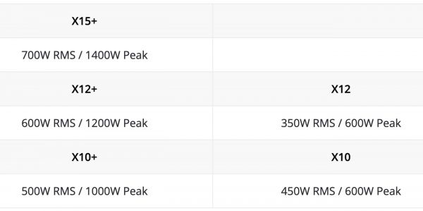 Az X10+ és X12+ mélysugárzók tekercsei, illetve mágnesei 30 %-kal nagyobbak az elődökhöz képest. Ennek köszönhetően az X10+ RMS teljesítménye 450-ről 500 wattra nőtt, az X12+ esetében pedig 400 W helyett 600 W folyamatos terhelés lehetséges.