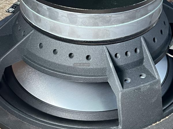 A láda belsejében, minden bizonnyal az oldallapokba épített passzívmembránok miatt nem alkalmaztak merevítéseket, ennek ellenére robusztus a konstrukció. A segédhangszórók nem kaptak kosarat, csak az inverz gumiperem tartja az MDF korongokat.