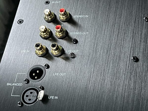 A hátlap az eddig említettekkel azonos színvonalat mutatott, sőt, még emelt is a kialakult pozitív összbenyomáson. A csavaros, aranyozott RCA aljzatok a legmagasabb igényeket kielégítőek, mindenből van kimenet is. Konkrétan 2-2 sztereó, 1-1 LFE és alattuk 1-1 XLR LFE! Utóbbiaknak mindig nagyon örülünk, mert a csúcskategóriás processzorokon szokott lenni ilyen kijárat, biztosítva a lehető legjobb hangminőséget. Ezek a leglényegesebbek, de azért megemlítjük a szoftverfrissítésre és laptoppal kalibrálásra szolgáló USB aljzatot, az intelligens ház rendszerekhez csatlakozást lehetővé tévő RS-232 portot valamint a trigger és az IR vevő kis Jack-jeit. Van még itt egy áramtalanító billenő kapcsoló és az IEC táp aljzat zárja a sort.