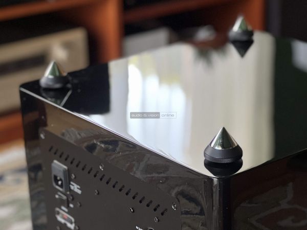 A Gold W12 25 mm vastag MDF lapokból - kivétel a frontoldal, mert az 36 mm-esre hizlalták - ácsolt, dobozának függőleges éleit lekerekítették, ez esztétikai szempontból mindenképpen pozitívum. A bemutatás végén szoktuk, de most itt említjük meg a talpába csavarozható lábakat, amik szintén a Monitor Audio-tól megszokott igényes, míves kivitelűek. Padló fajtájától függően beletekerhetőek a mellékelt, tekintélyes átmérőjű, fényes, krómozott és nagyon hegyes tüskék, vagy azok nélkül, a csúszásbiztos gumikorongokra állítható a mélyláda, ha parkettás a szoba. Mi kipróbáltuk saját, bevált alátéteinkkel a tüskéket, úgy hallgattuk, teszteltük a mélyládát.