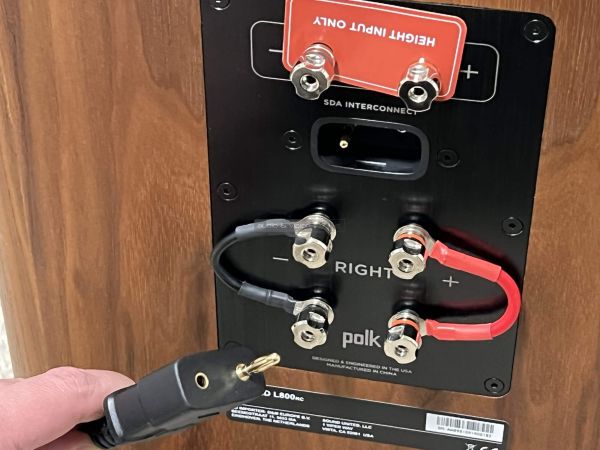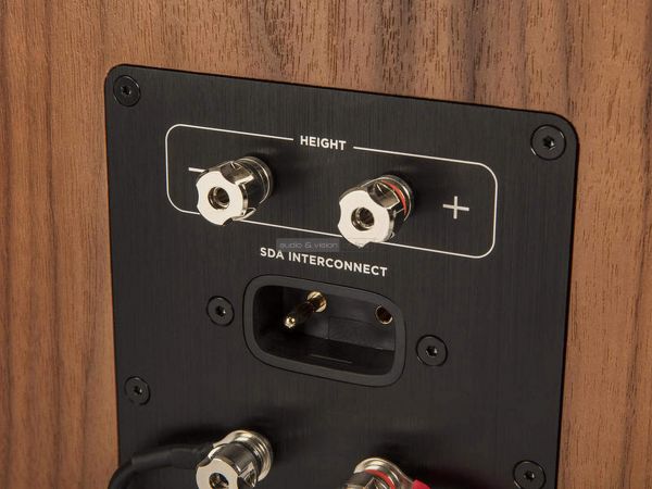 Hogy mik ezek a körülmények? Először is nincs semmiféle hókuszpókusz a rendszerben, egyszerűen csak egy "köldökzsinórhoz" hasonló (ők hívják így!) speciális kábellel kell összekötni a két Legend L800-at (mellékelve van), melynek aljzata ott található a kettős kábelezésre/erősítésre alkalmas csatlakozó és az opcionális L900 Atmos sugárzó csatlakozója közt. Ez a kábel koordinálja a megfelelő jeleket a keresztváltók között, hogy minden hang odakerüljön, ahova kell. Ennek elhagyásával sajnos az L800 egy nagyon drága csalódás lesz, ám amikor az SDA működésbe lép, egy új és érdekes világ tárul elénk.