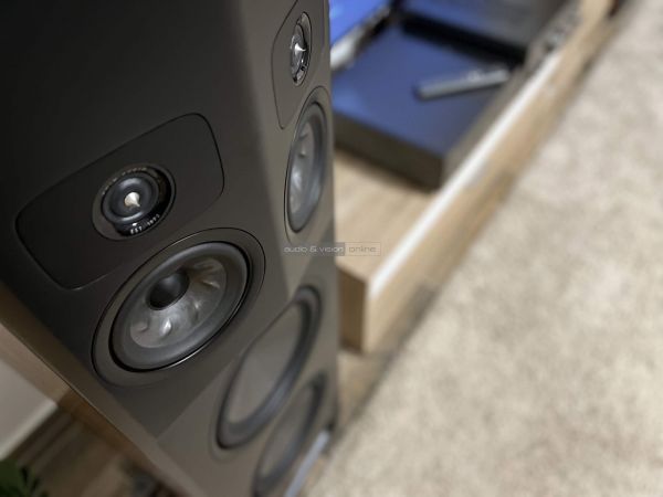 Felette a már ismert 13,5 cm-es Turbine mélyközépsugárzó párosa, valamint a szintén párban megtalálható 2,5 cm-es Pinnacle magassugárzók bámultak ránk bevetésre készen, és éppen ezen a részen szembesülhettünk a legnagyobb Legend hangszóró igazi különlegességével.