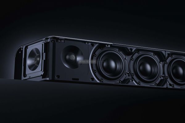 A hangrúd igényes szálcsiszolt alumínium háza és roppant merev kompozit teste ad otthont a nem mindennapi technikáknak. A hangszórókészlet összesen 13 tagból áll. Ebből 6 db 100 mm-es mélyközépsugárzó és 3 db 25 mm-es alumínium dóm magassugárzó a hallgató irányába, 2 db srévizavé oldalra, valamint 2 db 90 mm-es szélessávú hangszóró felfelé sugározva gondoskodik az 5.1.4 térhatás létrehozásáról.