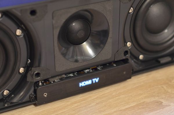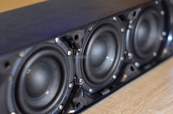 Ezeket a soundbar-oknál rendhagyó módon egy eltávolítható védőrács teszi láthatatlanná, ami talán jobb is, ha fent marad, ha csak valaki nincs megőrülve a nyers ipari kinézetért. Mindenesetre jó volt látni a mélyközépsugárzók membránjainak játékát terhelés alatt.