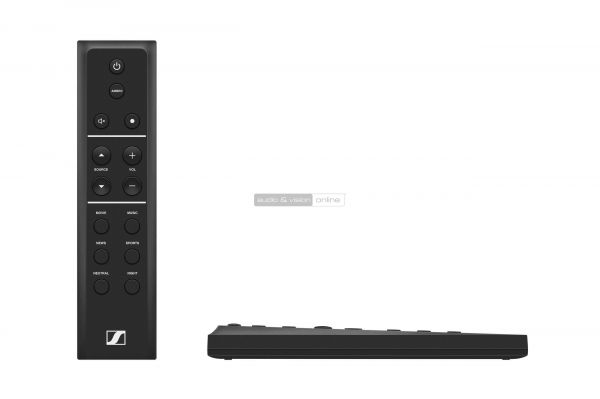 Az AMBEO Soundbar vezérléséről egyrészt egy elegáns matt fekete távvezérlő gondoskodik (sajnos nem smart), másrészt a Sennheiser applikációja, mely sokkal inkább szól a soundbar-ról és annak mindenre kiterjedő beállításáról, mintsem a különböző hálózati, vagy kényelmi funkciókról.