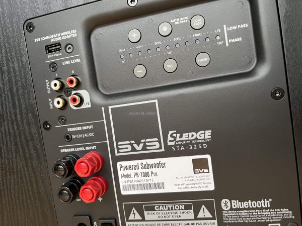 Ezen kívül is történtek változtatások, mint a diszkrét MOSFET meghajtás, az 50 MHz-es Analog Devices DSP 56 bites szűréssel. A hátlapon USB aljzathoz csatlakoztatható az SVS SoundPath Wireless Audio Adapter vezeték nélküli jelátvitelt biztosító egység. A teljesség kedvéért felsoroljuk a többi csatlakozót: 1-1 pár RCA be- és kimenet, előbbiek egyike LFE jelölésű, valamint szintén 1-1- pár hangszórókábel be- és kimenet, 1 db trigger bemenet. Végül egy újabb nehezen emészthető tulajdonság; a tápcsatlakozó borotva/piskóta kivitelű. Valaki árulja el, ez miért jó? Nem estünk kétségbe, mivel erre is felkészültünk és Nordost Purple Flare tápkábellel vártuk ezt a mélyládát.
