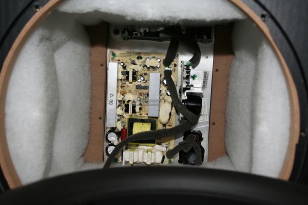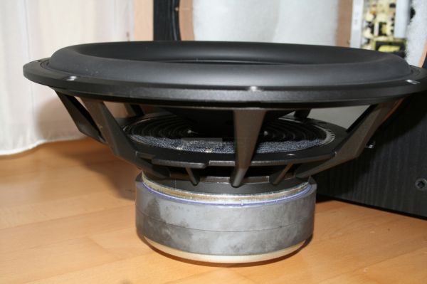A mélyláda bemutatását a régi SVS logóval díszített hangszóróval kezdjük. Alumínium öntvény kosár porszórással kezelt felülettel, nagy kimozdulást (Xmax) engedélyező hurka gumiperem és fekete színű Nomex pille tartja helyén a polipropilén porsapkás alumínium membránt. A 2 col átmérőjű lengőtekercs hatalmas terhelést képes elviselni, mozgását dupla ferrit mágnes segíti. FEA (Finite Element Analysis) optimalizálással alakult ki a végleges forma és szerkezet annak érdekében, hogy a legjobb műszaki jellemzőket érhessék el. Ez érintette a kosártól a pólusvasig, annak furatáig az összes alkotóelemet: küllők geometriáját, pillét, lengőtekercset, szellőzést, mágnes méretet. Említést érdemel a 2,54 mm vastag MDF lapokból készített doboztest, aminek előlapjába tizedmilliméteres pontossággal simul bele a hangszóró kerete. Az a 8 db 45 mm hosszú csavar, ami tartja, fém hüvelybe tekeredik bele, így biztosították sok évre a kellő stabilitást. Ha a miénk lenne ez a szubláda, akkor a belső vezetékét is kicserélnénk valami vastagabbra és minőségibbre, nem csak a tápkábelét.