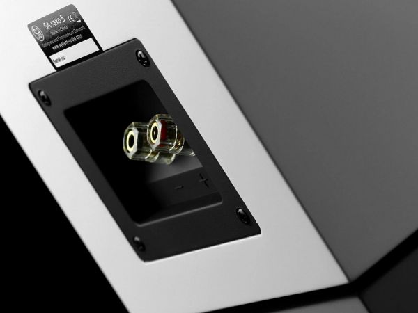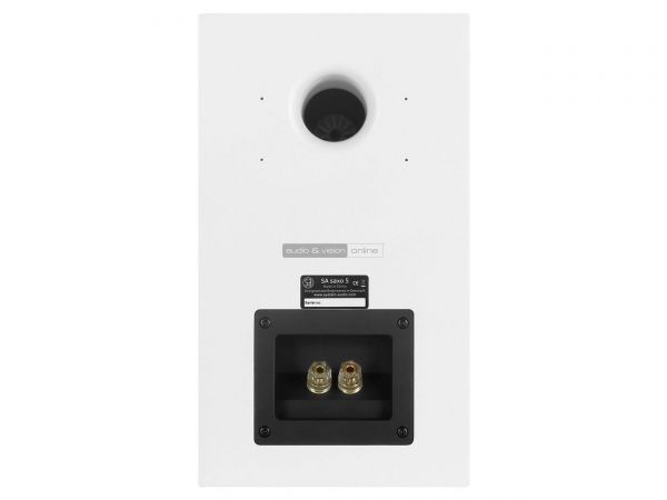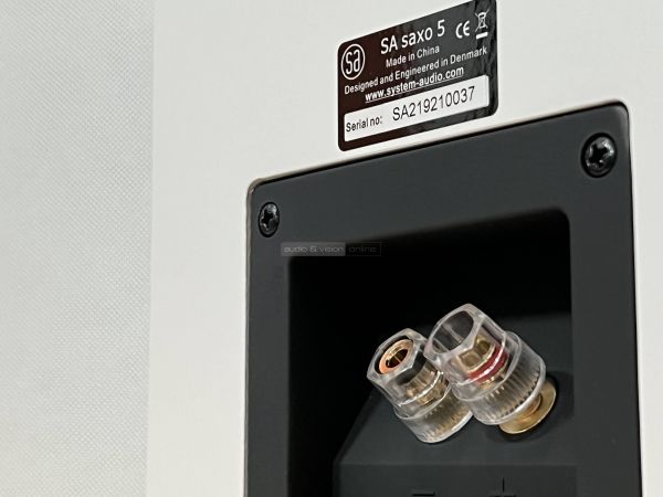 A hangszórók alapanyagáról viszont nem szeretnek sokat elárulni, csak annyit tudtunk meg, hogy textilt és cellulózt alkalmaztak, ezek szerint nagy becsben tartják ezeket a műhelytitkokat, amivel szerintünk nincs is semmi probléma. Az SA saxo 5 kétutas hangdoboz, elég parányira sikerült basszreflex nyílása hátul található, a magassugárzó mögött. Alatta jó minőségű csatlakozók állnak a rendelkezésünkre, amelyek a szimpla erősítést teszik lehetővé. 88 dB az érzékenysége, így legalább 50 wattos erősítőt ajánlanak hozzá, hogy a specifikációk között megadott 50-25 Hz közötti frekvencia-tartományt hallhassuk.