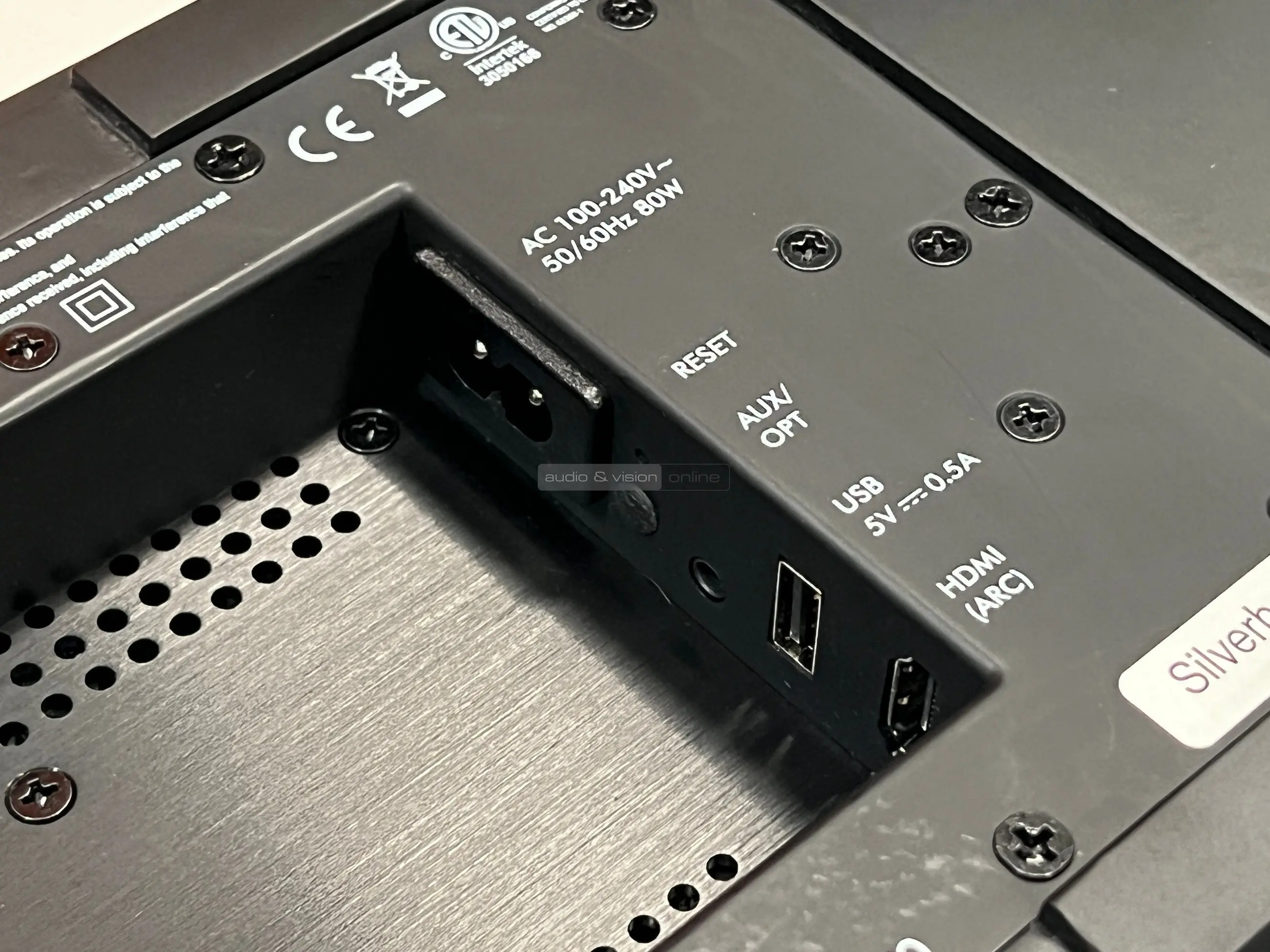 A vezeték nélküli lehetőségeken felül optikai, 3,5 mm-es AUX és HDMI ARC csatlakozó is várja a megfelelő helyekről érkező kábeleket, ha mégsem a konyhában, hálószobában vagy a WC-ben akarjuk elbújtatni ezt a méretes szépséget, és nyilván ilyen lehetőségekkel érdemes lehet a tévénk hangjának drasztikus mértékű javítására bevetni a Silverbar-t, így tesztünk során mi is így tettünk.