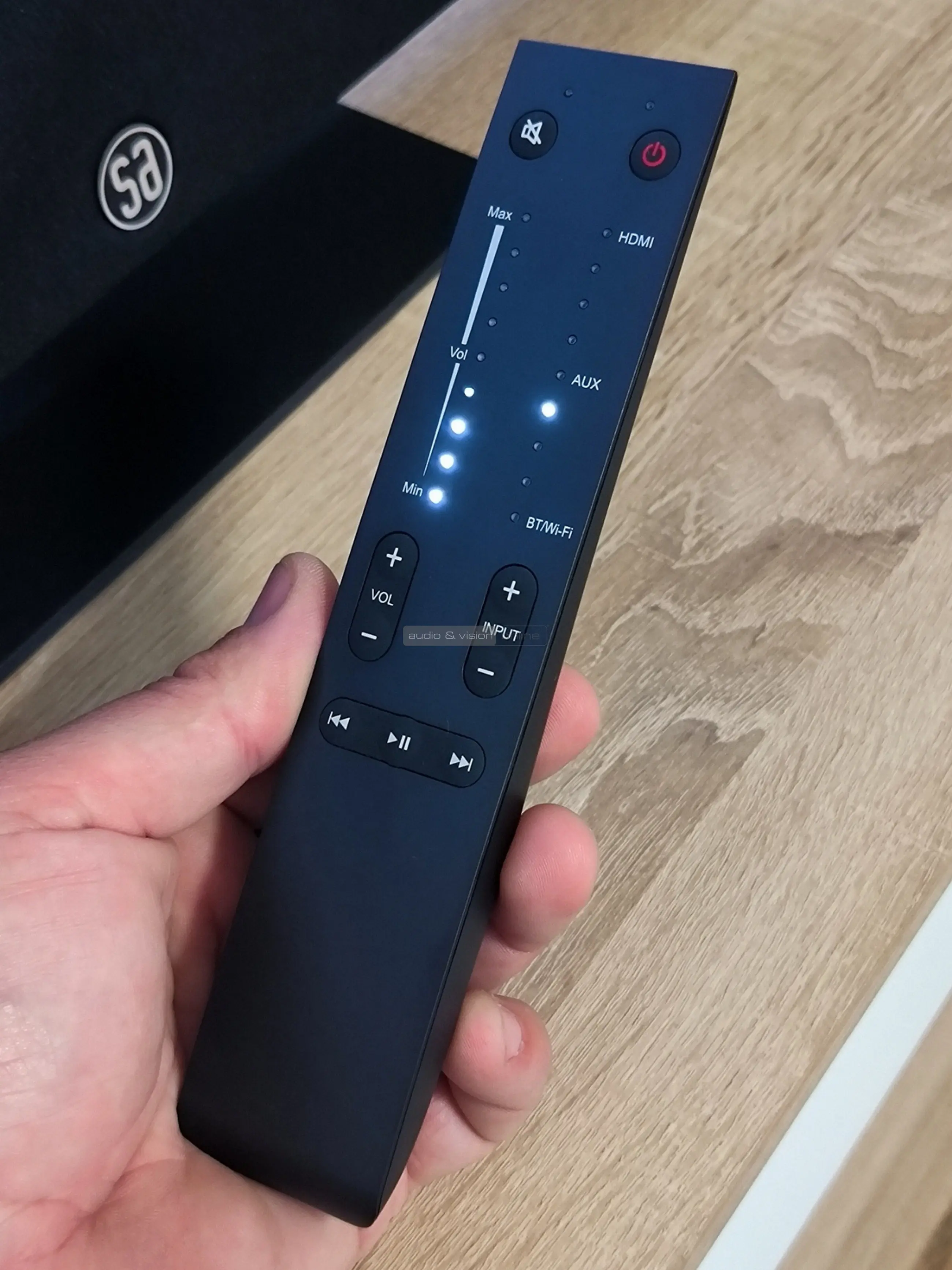 Bár a mellékelt távvezérlő ismerős volt a korábbi System Audio tesztekből, túl nagy feladatot most sem kellett rábíznunk, de tény, hogy igényes darab, jópofa megvilágítással és hasznos funkciókkal, de a HDMI ARC bevetésével lényegében ki is iktattuk a rendszerből.
