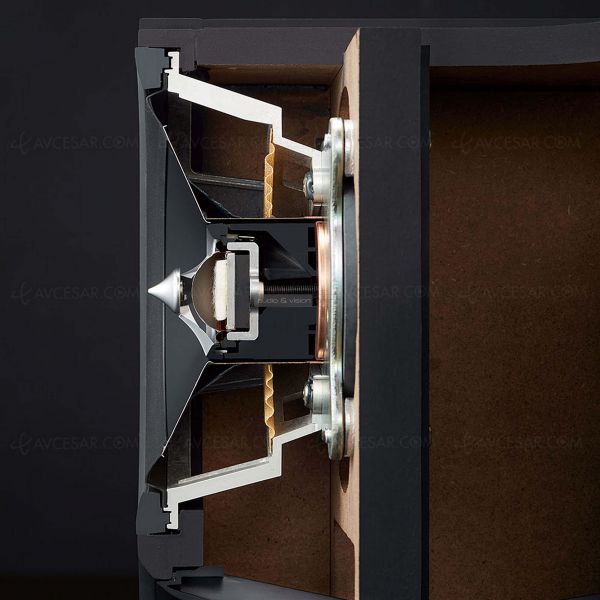 Kivitele kétutas, előre néző basszreflex nyílással kiegészítve. A magassugárzón lévő dóm és a mélyközépsugárzó membránja is alumínium, alunit bevonattal. A hangszórók koncentrikus (gyakran koaxiálisnak is nevezik) elrendezésűek, ami azt jelenti, hogy a magassugárzó a mélyközépsugárzó közepében helyezkedik el. Ezzel pontforrásos hangszórás jön létre.