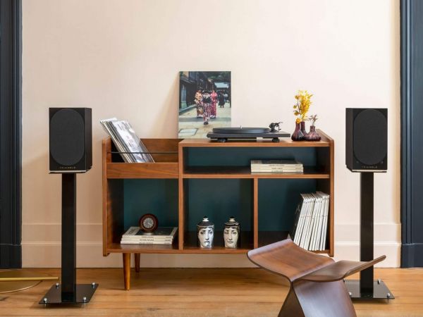 Nemcsak az elegáns mélykék árnyalat üdítő, hanem a vele harmonizáló részletek. A magassugárzót bronz és rozéarany közti árnyaltú karika díszíti. Ugyanilyen színűek a talpak, melyek kivitele szokatlan, mégis frappáns. A hangdobozok lábait széltében fekvő hengerek képezik, amelyek sarkaira apró gumi pöcköket helyeztek a vibráció csökkentés és csúszásgátlás érdekében. Ezek a kis csövek és a velük passzoló színű embléma meglepően harmonikus összképet teremt a szögletes dobozzal.