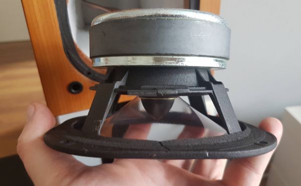 Kicsomagoláskor felfigyeltünk a 127 mm-es, átlátszó polipropilén membrános mélyközép-sugárzóra, ami szintén elég szokatlan látványelem, de éppen ezért szerethető is - ilyen jól nem lehet belátni másik hangsugárzóba! A membrán közepén fáziskúpot láthatunk, ami a megjelenést még érdekesebbé teszi.
