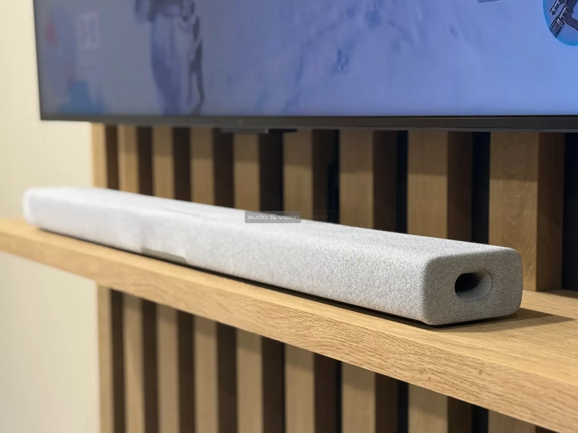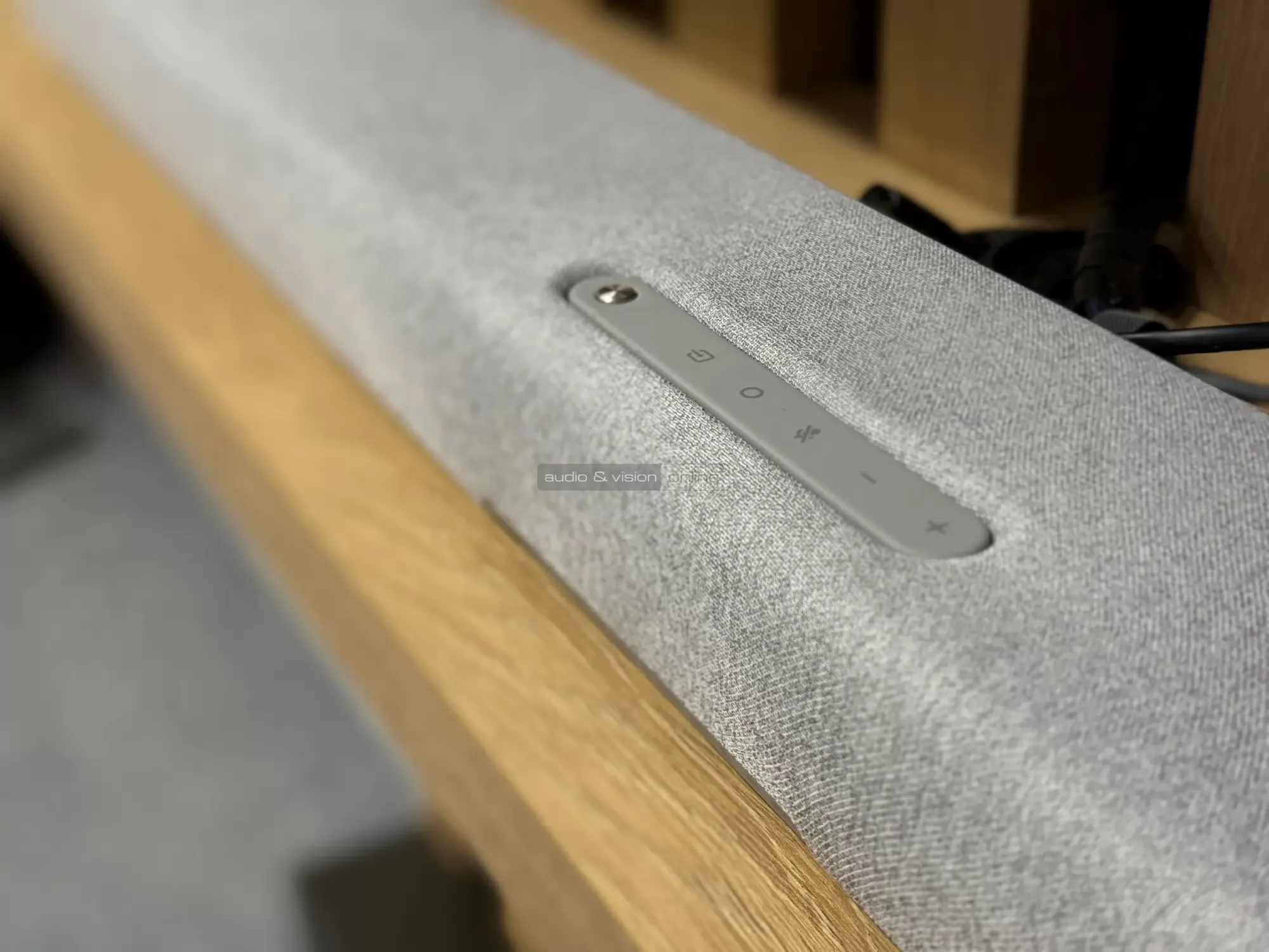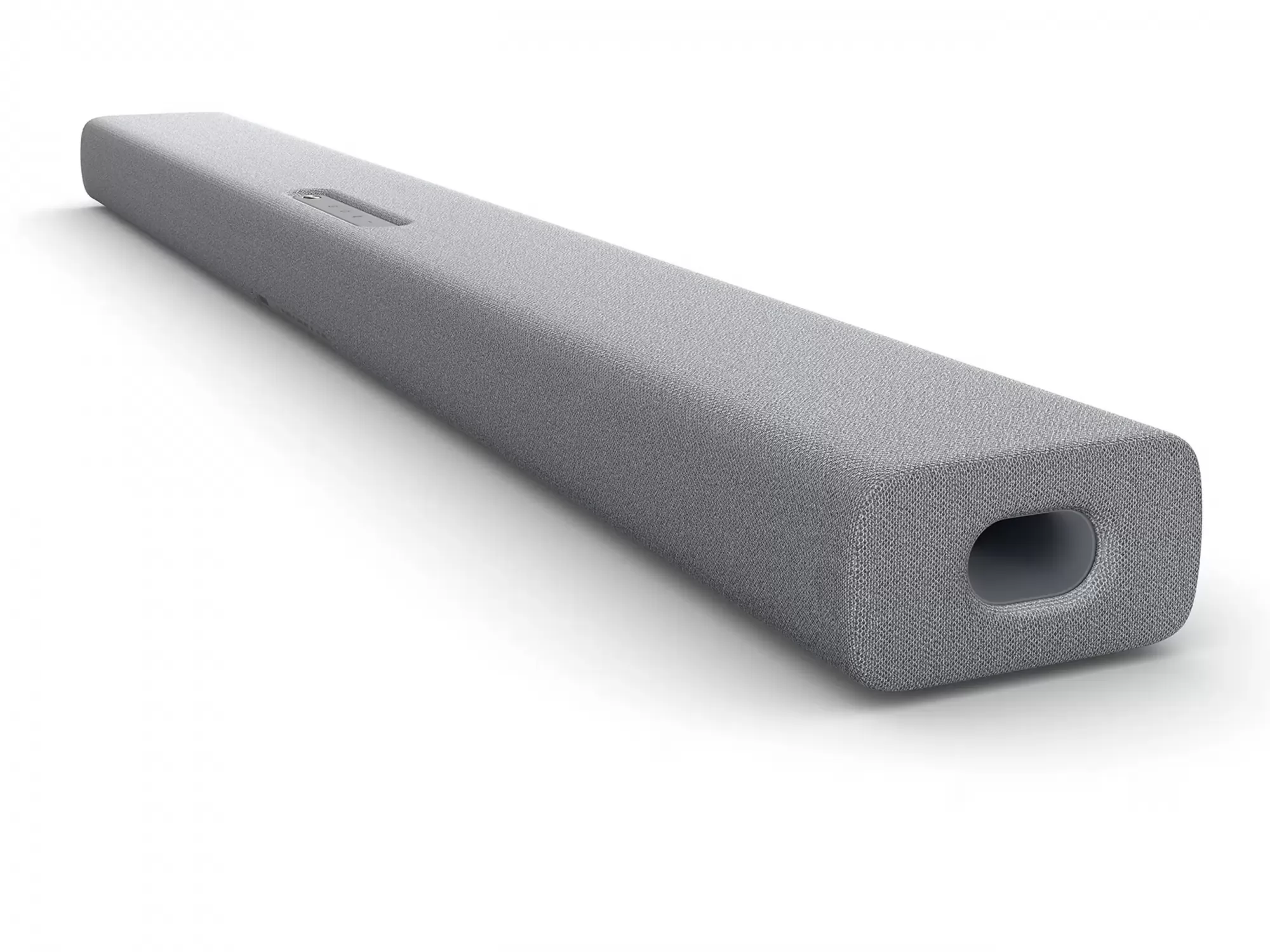 A Yamaha szettjének központi eleme az SR-X40A hangrúd, amit szinte teljes egészében szövet borít, és fekete, karbon szürke vagy világos szürke színben választható. Az utóbbi jutott hozzánk, ami nem csak mutatós, de kevésbé kényes, mintha egyértelműen fehér lenne, hiszen azon még a legapróbb légypiszok is azonnal nyomot hagy, így viszont egyszerre mutatós és praktikus is. A frontoldalon LED-sor, a felső részén pedig az alap kezelőszervek találhatók a biztonság kedvéért, ám vezérelni biztosan a remek távirányítójával, vagy a Sound Bar Controller applikációjával fogjuk, de adott az Amazon Alexa is, amivel a hangerőt, a bemeneteket és a zenét a saját hangunkkal is módosíthatjuk.