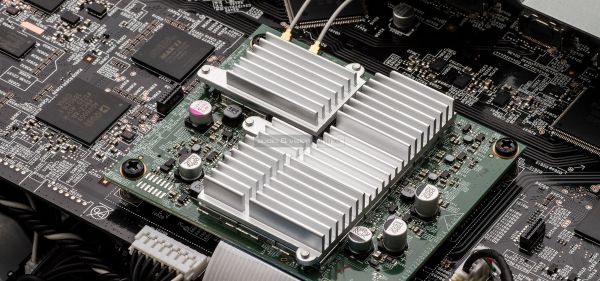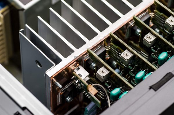 Nem titkoljuk el, szemöldök összevonást váltott ki belőlünk, amikor legelőször megláttuk a 13-as számot. No, nem azért, mert babonásak vagyunk. Ha valaki nem értené, miért aggódtunk, elmeséljük. Vegyük példának a Marantz MM8077 és MM7055 végerősítőit, melyek alig kisebb készülékházzal 7 illetve 5 csatornával rendelkeznek. Névleges teljesítményük nagyjából akkora, mint ezé a gépezeté, és nem konganak az ürességtől, hanem rendesen tele vannak pakolva alkatrészekkel. Meglátva az AVC-X8500H belsejének szellős elrendezését, zsúfoltság egy szál se, kicsit megnyugodtunk. A kitárgyalt transzformátort 2 mm vastagságú rézlemezzel kombinált alumínium öntvény bordák fogják közre, azokhoz erősítették gyönyörű katonás rendben az erősítő modulokat. Az alájuk szerelt ventilátorok segítik a hőcserét, felfelé kergetve a lamellák közül a meleg levegőt.