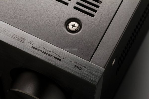Az előlap alumínium, méghozzá meglehetősen vastag, a lehajtható ajtó valóságos fémtömb. A tető- és oldallapok és a padlólemez nem többrétegűek, mint egyes Denon DVD- és BD-játszókéi, de bizalomgerjesztő mennyiségű anyag van bennük. A két tekerőgomb nem csak szép, ritkán előforduló használatuk közben azt sugallják, high tech csúcsmodellt érintünk. A fényes (tesztalanyunk prémium-ezüst színű) pogácsák közé jókora kijelzőt telepítettek, messziről is felismerhető ábrákkal, betűkkel, számokkal tájékoztatja használóját mindenről, amit tudnia kell. Nekünk nagyon tetszett a menüben választható csatornakijelzés, a beérkező és a kimenő is megjeleníthető, de egy időben csak az egyik.