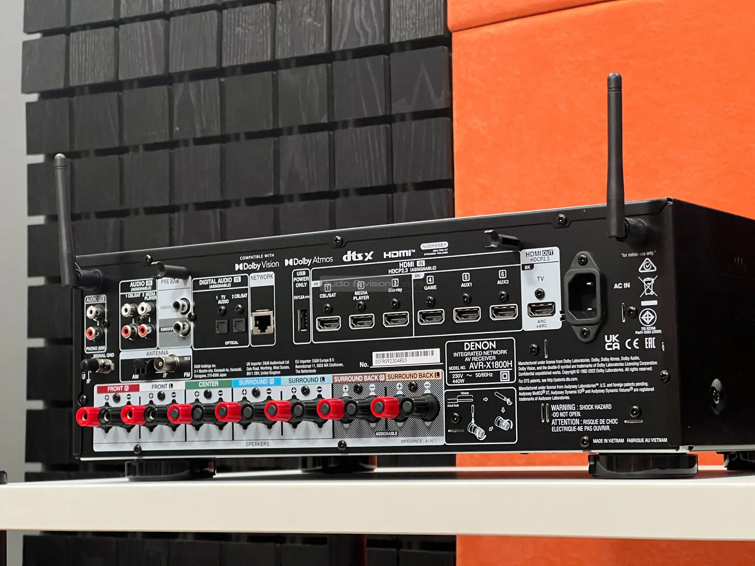 Az előlap klasszikus Denon, tehát baloldalon bemenetválasztó, jobboldalon hangerővezérlő tárcsa, köztük nagyméretű kijelző, alatta néhány közvetlen elérésű opció, jól szeparálva meg fejhallgató, mérőmikrofon és USB-bemenet található. Letisztultabb talán nem is lehetne, és ez elmondható a hátoldalra is. Az AVR-X1800H 7.2-es vagy 5.2.2-es összeállításban is használható, a hozzájuk tartozó hangfalkimenetek az alsó szegmensben sorakoznak szépen, egymás mellett. HDMI-ből hat bemenetet és egy kimenetet találunk, vevőantennából kettőt alkalmaztak, USB-ből van egy hátsó is, szimpla telefontöltéshez, de van előerősítő kimenet, dupla optikai bemenet, és az analóg zenehallgatókról sem feledkeztek meg, ahogyan a dupla subwoofer kimenetről sem, és még a rádióhallgatókat sem hagyták parlagon. A kivitel és megépítés a kategóriájában abszolút megfelelő, a távvezérlő értelemszerűen kezelhető, a tápkábel pedig cserélhető. Azért sem eresztettük cikkünk ezen részét bő lére, mert a leírtakat a Denon a kisujjából kirázza. Most viszont jöjjenek az érdekességek!