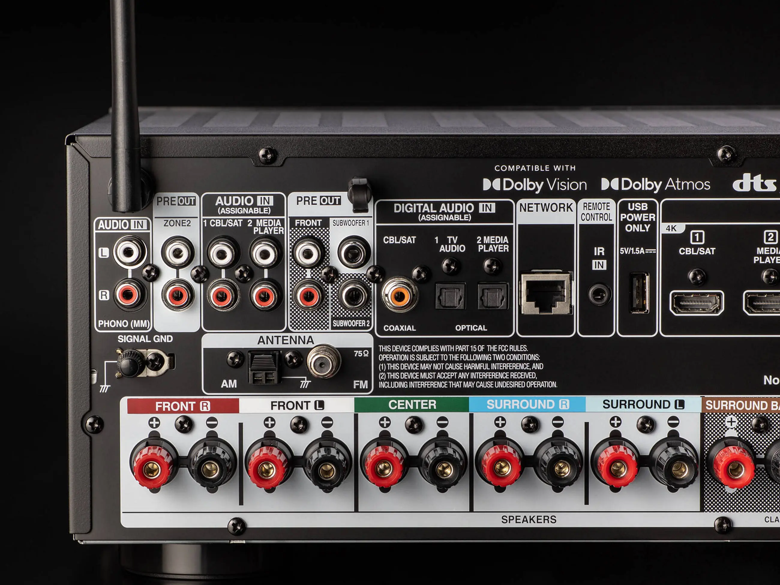 A készülék 7.2 vagy 5.2.2 konfigurációban is képes kisebb vagy közepes méretű szobákat megtölteni hanggal, köszönhető ez a Dolby Atmos és DTS:X rendszernek, a csatornánkénti 145 watt teljesítménynek, ami mögött diszkrét, nagyáramú erősítők vannak. Ezekhez jön még a Dolby Surround és a DTS Neural:X upmixer, amivel a régebbi hanganyagokat optimalizálhatjuk, és még 3D hangzást is elérhetünk.