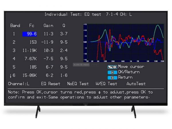 Az Emotiva EMO-Q automatikus szobaakusztika korrektorának legfrissebb változata segít a finomhangolásban. Vizuális felület is tartozik hozzá, amelyen keresztül valós időben nyomon követhetők a mért és javított szobamérési görbék. Az összes csatorna tesztelhető és a javított eredmények is tovább módosíthatók valós időben.