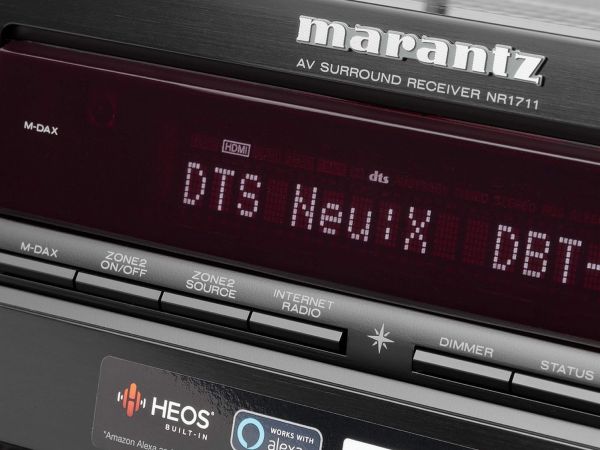 Az erősítő 7.2 csatornás és természetesen Dolby Atmos 5.2.2 konfiguráció megvalósítására képes. Emellett a DTS:X és a Dolby Atmos magassági virtualizáció, illetve a DTS Virtual:X is támogatott, hasonlóan mind a négy HDR szabványhoz (HDR 10, HDR 10+, Dolby Vision, HLG). A VRR (Változtatható Frissítési Ráta), a QFT (Gyors Képkocka Transzport) a QMS (Gyors Média Kapcsolás) és az ALLM (Automatikus, Alacsony Késleltetés Mód), funkciók a Marantz új házimozi erősítőinek mindegyikében, így itt is támogatottak. Természetesen az NR 1711-ben is a jól bevált HEOS multiroom/streaming rendszer dolgozik, de az AirPlay 2 is rendelkezésre áll, az összes fontos streaming szolgáltatás (TIDAL, Spotify, Deezer, Amazon Music HD) elérhető, a beépített D/A konverter az AKM 32 bites AK4458-as típusa és DSD 5,6 MHz-ig képes a lejátszásra. A Bluetooth már itt is kétirányú, de a kodek sajnos alapszintű, az aptX és LDAC szabványokat nem támogatja. Az erősítő mindhárom hangvezérlő rendszerrel - Apple Siri, Amazon Alexa, Google Assistant - működtethető. Akusztikai korrekciót az Audyssey MultEQ rendszer végez.