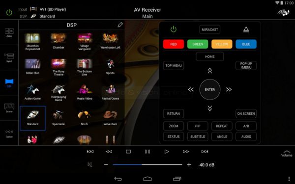 Bemenetek: | 8 db HDMI (1 előlapi), 2 db koaxiális, 2 db optikai, 2 db komponens videó, 5 db kompozit videó (1 előlapi), 5 db vonalszintű sztereó RCA (1 előlapi), 1 db phono (MM) sztereó RCA |