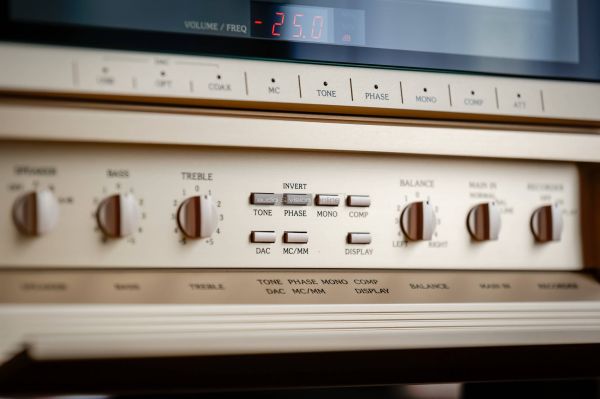 A bal oldali kapcsolóval választhatunk a hangsugárzó kimenetek közül: A, B, és A+B. Ezután találjuk a hangszínszabályzókat, amiket ebben a kategóriában talán illetlenség lenne használni. Erre a gyártó is gondolt, hiszen éppen melléjük helyezték a Tone feliratú gombot, amivel ezeket teljesen kiiktathatjuk a jelútból. A Tone gombtól jobbra fázisfordító, monó üzemmód, valamint a beépített kompresszor kapcsolóit találjuk. Az alattuk lévő gombsor lehetőséget nyújt az opcionális DAC-50 és AD-50 phono kiegészítő kártyák be- és kikapcsolására. Mellettük jobbra a Display gombot látjuk, amivel elsötétíthetjük a teljes kijelzőt az Accuphase logó kivételével. Tovább haladva balance állító, valamint az integrált vagy végfok üzemmód között váltó Main In kapcsoló, és a Recorder kimenet kapcsolók helyezkednek el.
