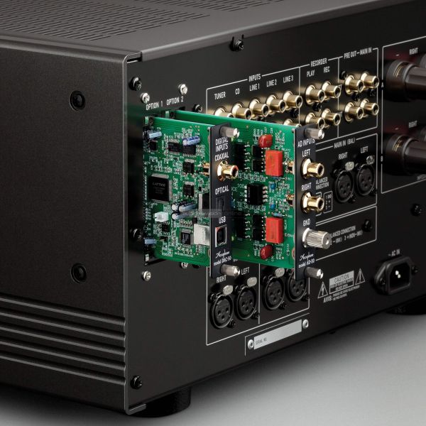 Bal oldalon bekapcsoló gomb és bemenetválasztó, jobb oldalon pedig fejhallgató kimenet, AAVA technológiájú, 65 536 lépésben állítható hangerő szabályozó és egy Attenuator feliratú gomb helyezkedik el. Utóbbi a némítás funkciót helyettesíti, de érdekes módon nem némítja el az erősítőt, ha megnyomjuk, hanem mintegy 20 dB-lel csökkenti a hangerőt.