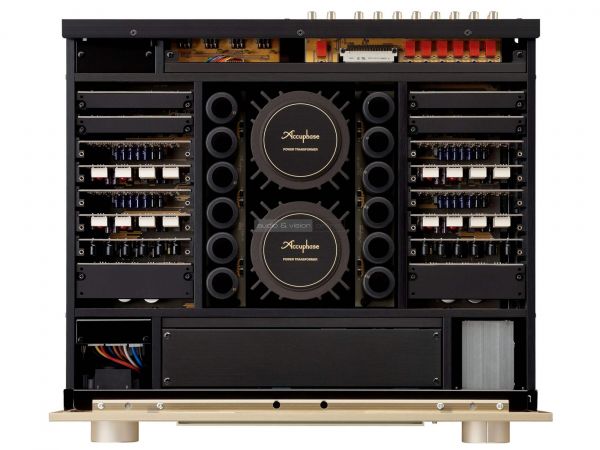 A dual mono felépítésű előerősítőben csatornánkét külön toroid transzformátor is helyet foglal a még jobb és tisztább áramellátás érdekében, valamint az Accuphase magasszintű modelljeinél már megszokottnak mondható faborítás is megjelenik.
