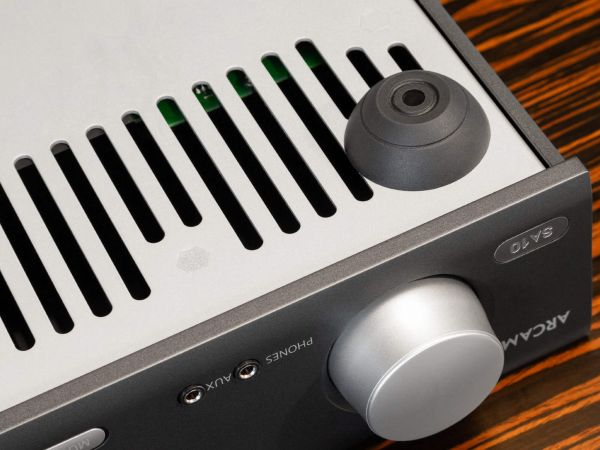 A kellemes megjelenésű és könnyen kezelhető távirányító segítségével menübeállítások teljes sora érhető el, beleértve az energiatakarékossági lehetőségeket, az AV üzemmód kalibrálását, valamint a kijelző és a fejhallgató kimenet szintjének állítását. Az SA10-et egyébként az Arcam Control applikációval is vezérelhetjük, amit a hivatalos weboldalakról tölthetünk le a telefonunkra. A készülék stabilitását négy darab vaskos műanyag láb biztosítja, az első kettő között a tetőlapihoz hasonló szellőzőnyílásokat helyeztek el, biztos, ami biztos alapon.