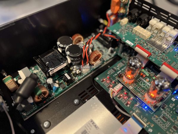 A belső is szemet gyönyörködtető, az árnyékolt kapcsolóüzemű táptól kezdve a moduláris felépítés magasiskoláját idéző egységekig, a Pascal-tól érkezett erősítő modult, illetve a gyönyörűen kivitelezett csöves megoldást is beleértve az előfok szekcióban. A TEAC CD futómű is korrekt, egy all-in-one készülékben nem kívánhatunk szebbet, jobbat.