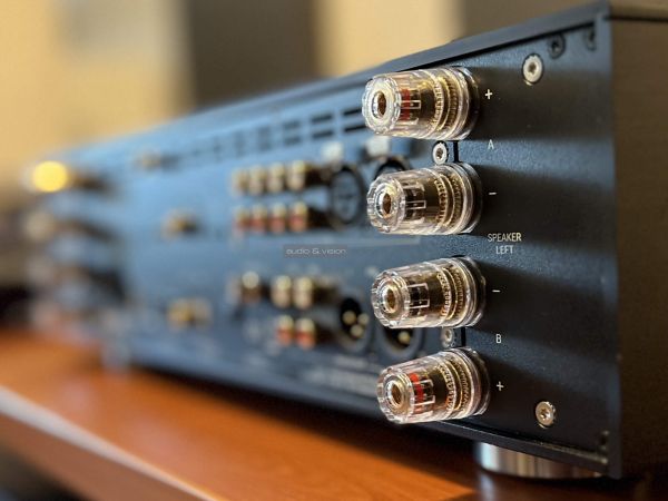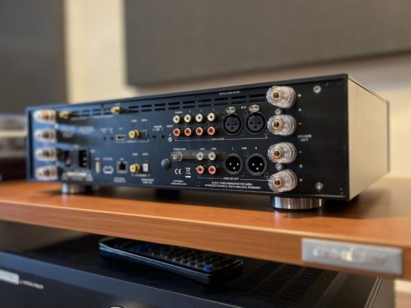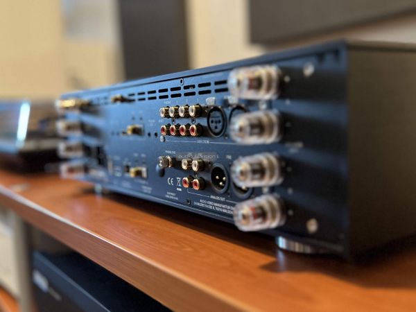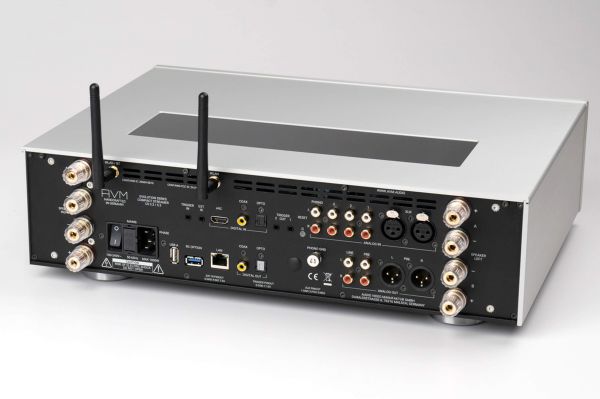 Felettük, az infra távirányító bemenet, HDMI ARC, digitális koaxiális és optikai bemenet és 2 db trigger kimenet kapott helyet, legfelül természetesen a WiFi és Bluetooth antenna található, majd a reset gomb után a phono RCA és további 3 pár RCA bemenet következik, XLR analóg bementből egy pár áll rendelkezésre. Ezen túl már csak a phono földelőpontja és az analóg vonalszintű RCA kimenet és az RCA/XLR előfok kimenetek maradtak. Reklámszlogennel élve: "minden, ami kell és semmi, ami nem."
