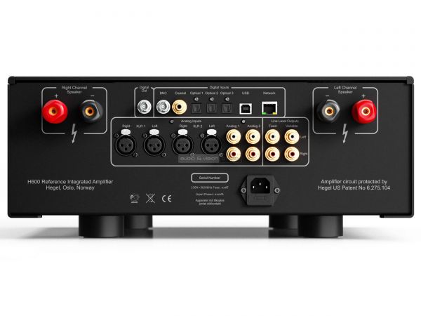 A Hegel H600 D/A konvertere bit-perfect kivitel, újra-mintavételezés és felskálázás nélkül. Nagyméretű, különálló tápegységről fut, amely stabil működést garantál, emellett vaskos acéllemezzel árnyékolták, hogy ne érjék zavarok az erősítő más áramkörei felől. A ház tömör alumínium padlólemezzel és szellőzőnyílásokkal ellátott tetővel rendelkezik. Vaskos alumínium lábai karcmentesen érintkeznek az erősítő alatti felülettel, miközben hatékony vibráció csökkentést végeznek.