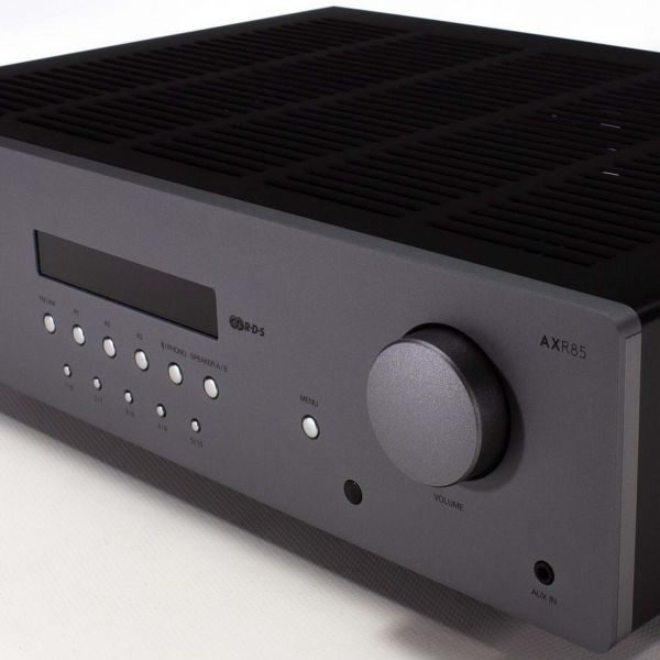 Mivel összesen négy darab hangsugárzó köthető rá, ezek között is itt van lehetőségünk a váltásra, valamint az RDS tuner is elérhető innen. Az AM és FM tartomány vételére is alkalmas a rádió, az utóbbiak közül ötöt helyezhetünk a készülék memóriájába, szintén közvetlen eléréssel hívhatók elő. Az AXR85 kedvez a fejhallgató használóknak is, normál méretű Jack aljzat került a bal alsó részbe, a túloldalon pedig ismét kicsit a kortárs divatnak felel meg aux bemenetével, amire mobiltelefonunkat vagy más digitális lejátszónkat köthetjük. Az alumínium előlapot ebben az esetben is végigfutó, ívelt talpazat tartja, hátul szintén nem változott a kettő darab klasszikus, gumírozott láb.