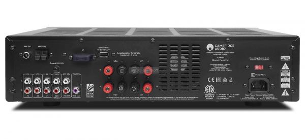 Tápcsatlakozója lehetőséget nyújt a kábeltuningra, hiszen a kisebb modellhez képest ez már hárompólusú. A szellőzőnyílások mögött ventilátor bújik meg, ami biztosítja belvilág számára optimális hőmérsékletet. A hangsugárzó csatlakozók normál kivitelűek, a sarut, csupasz drótvéget és a banándugót fogadnak. A rádióantennák csatlakozói mellett helyezték el a Bluetooth vevőt és egy USB-portot, ami a készülék szervizelésére és telefonunk töltésére alkalmas. Az említett három vonalszintű bemenetet követi a földeléssel is ellátott phono fokozat, valamint a Rec Out és a Sub Out kimenetek. A felsoroltak többsége alatt és fölött is elhelyeztek feliratot, egymáshoz képest 180 fokban elfordítva, hogy fölülről a készülék mögé hajolva is olvashatóak legyenek.