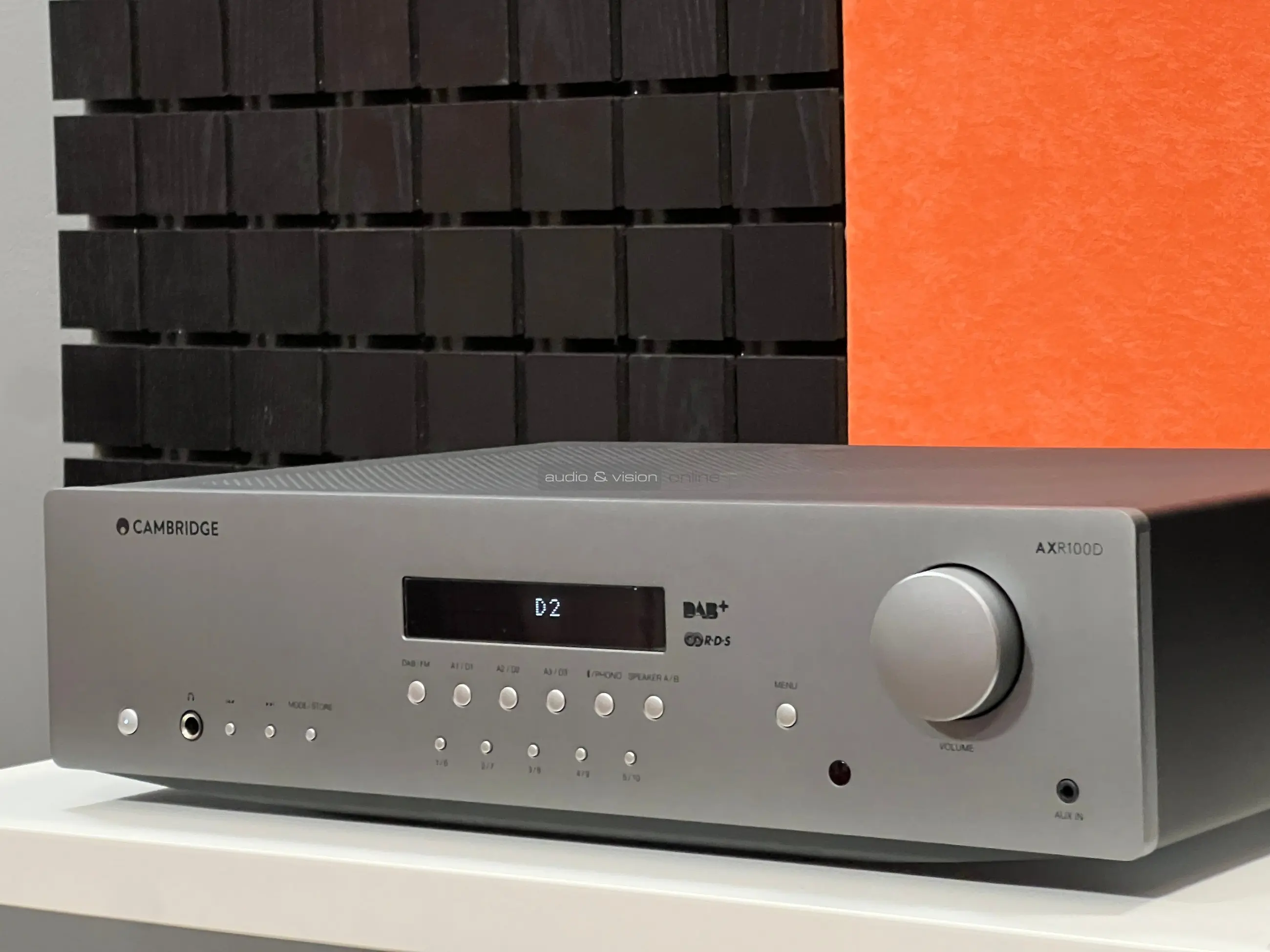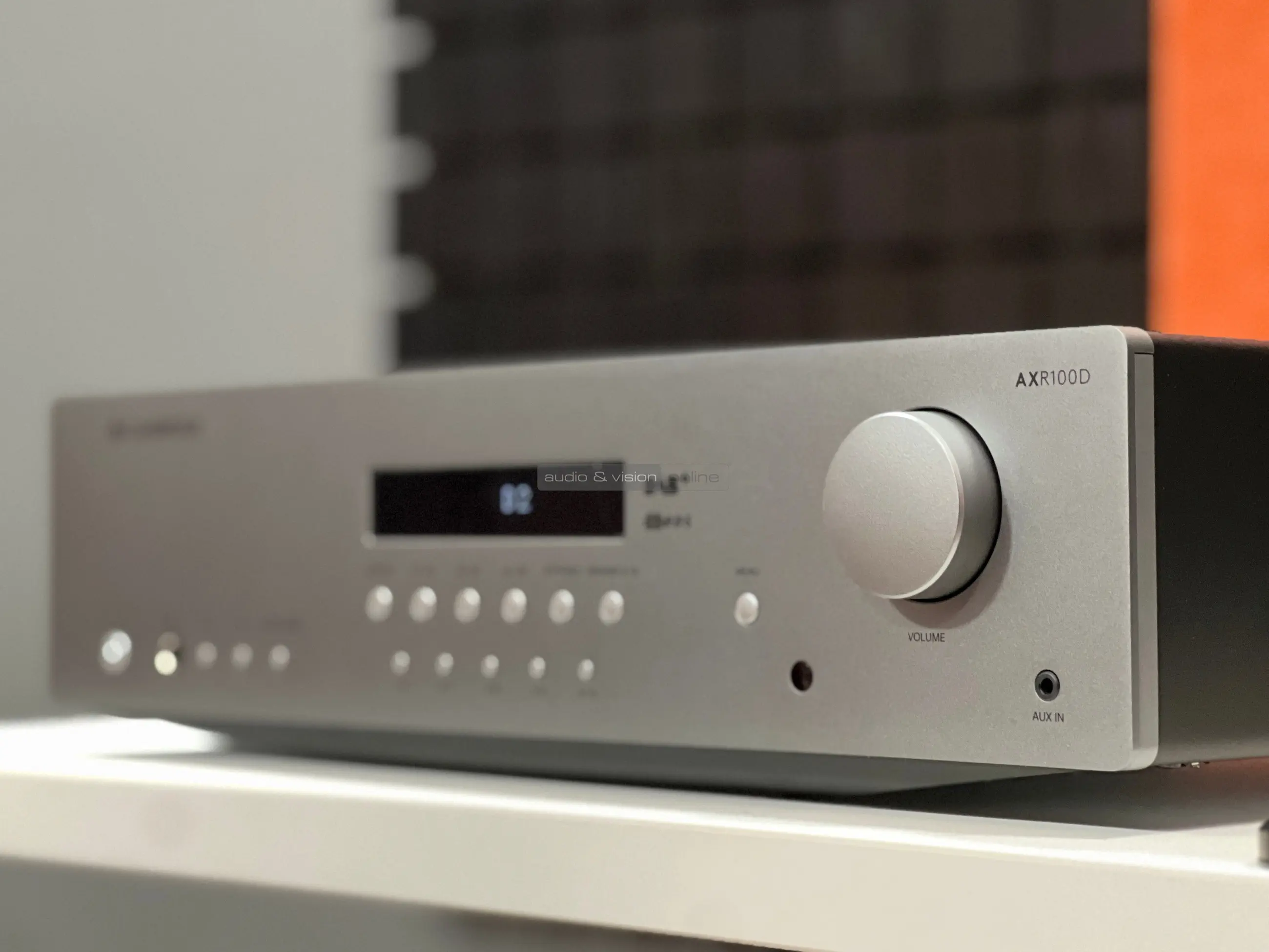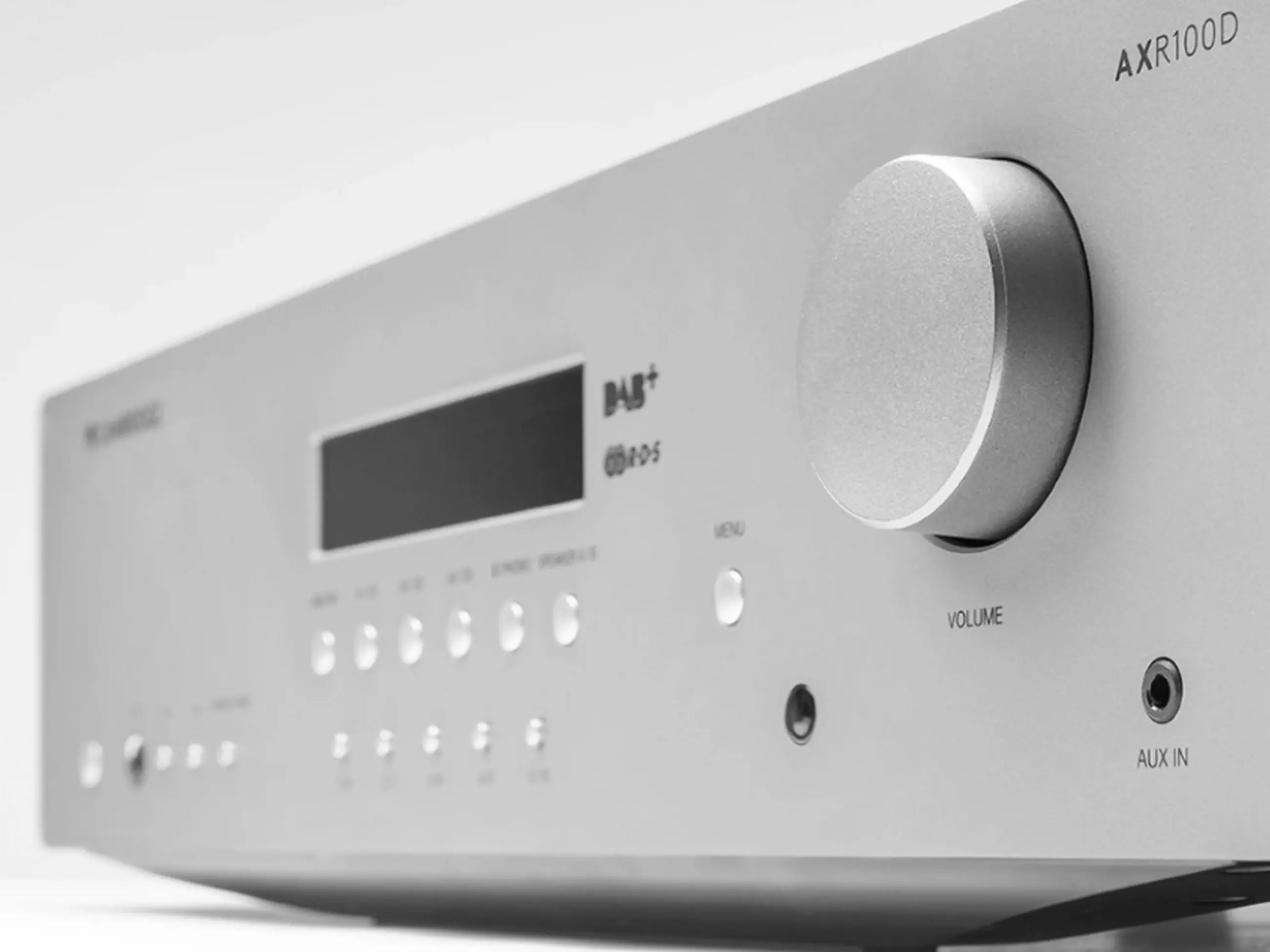 Az AXR100D egy sztereó rádióerősítő, ami az tökéletesen illeszkedik a Cambridge AX sorozatába, és a cég általa egy olyan készüléket kívánt megalkotni, ami bár a belépő szintet képviseli, mégis alkalmas arra, hogy hallható minőséget nyújtson, valamint kellően sokoldalú legyen. A fém előlap közepére helyezték a LED pontmátrix kijelzőt, mellé a hangerővezérlőt, logikusan, bár egyéni módon feliratozott gombokat a bemenetválasztáshoz, a menüben lépkedéshez, ahol a hangszínt szabályozhatjuk és a rádió vezérléséhez. Kapunk még egy aux bemenetet, egy normál méretű fejhallgató kimenetet, így nagyon funkcionális, ugyanakkor átlátható a frontoldal.