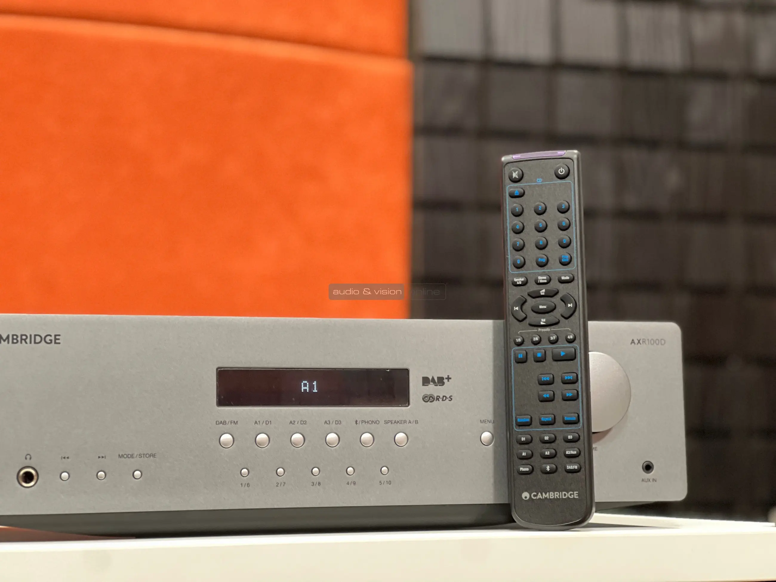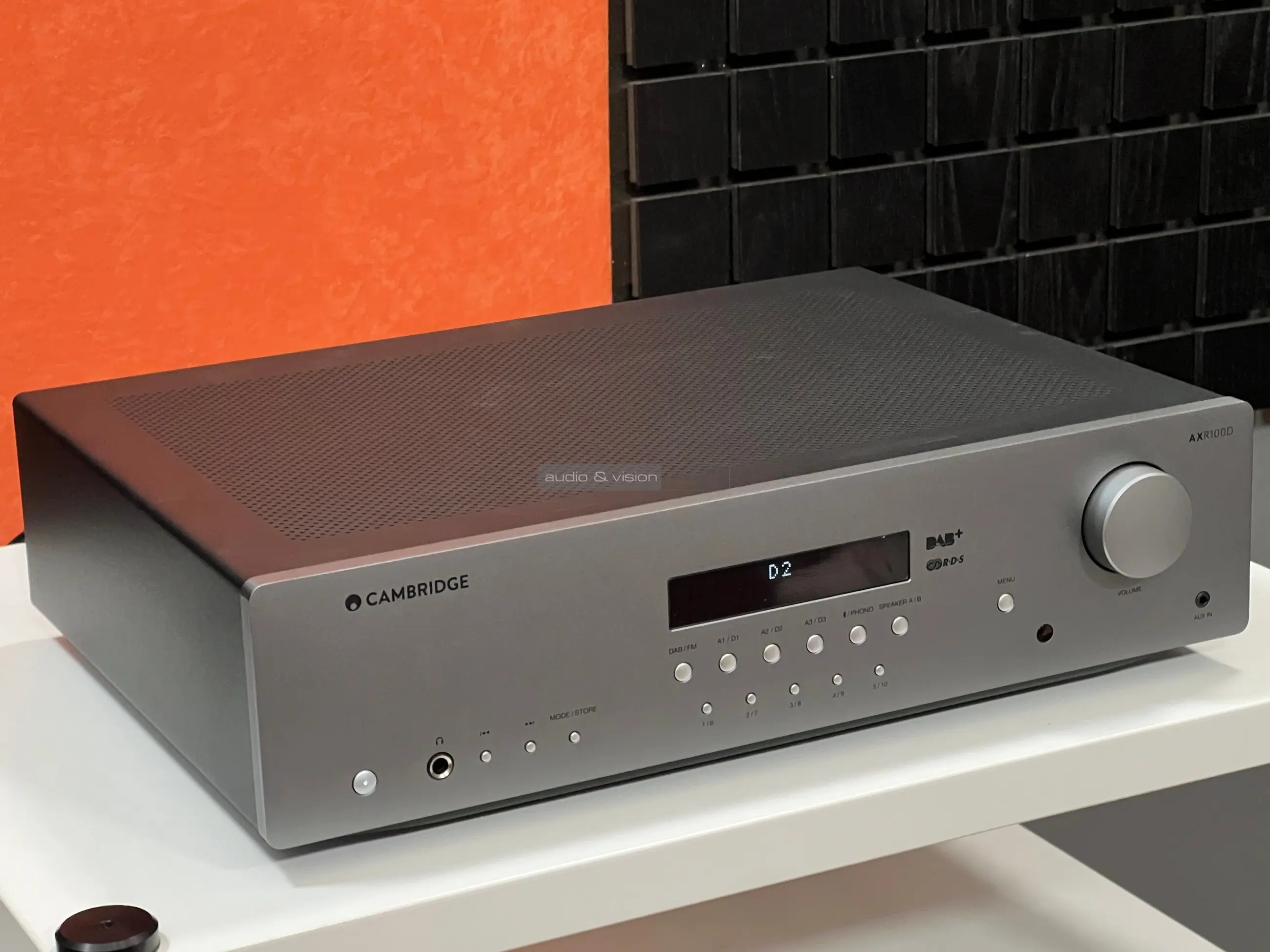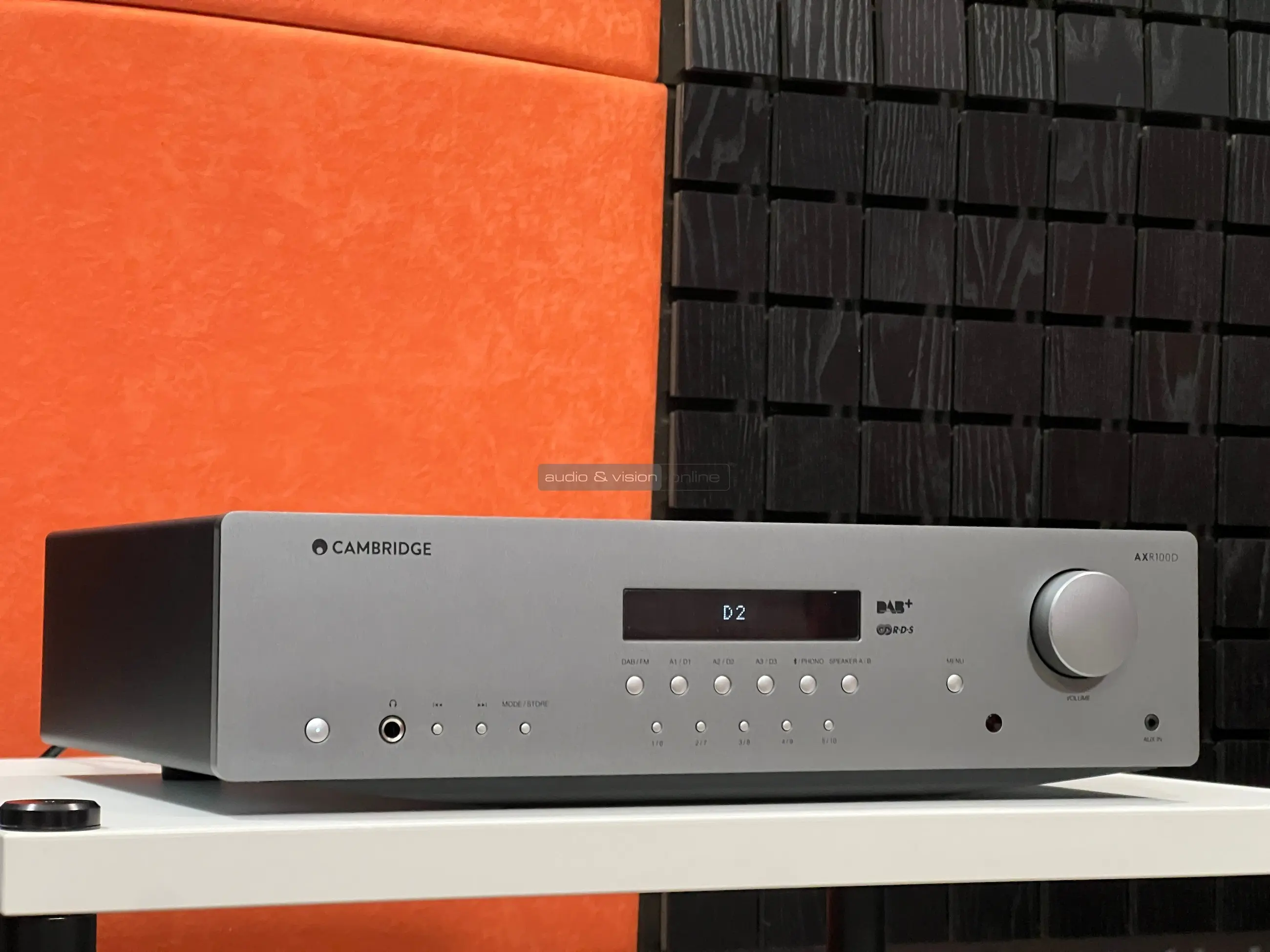 Az AXR100D egy sztereó rádióerősítő, ami az tökéletesen illeszkedik a Cambridge AX sorozatába, és a cég általa egy olyan készüléket kívánt megalkotni, ami bár a belépő szintet képviseli, mégis alkalmas arra, hogy hallható minőséget nyújtson, valamint kellően sokoldalú legyen. A fém előlap közepére helyezték a LED pontmátrix kijelzőt, mellé a hangerővezérlőt, logikusan, bár egyéni módon feliratozott gombokat a bemenetválasztáshoz, a menüben lépkedéshez, ahol a hangszínt szabályozhatjuk és a rádió vezérléséhez. Kapunk még egy aux bemenetet, egy normál méretű fejhallgató kimenetet, így nagyon funkcionális, ugyanakkor átlátható a frontoldal.