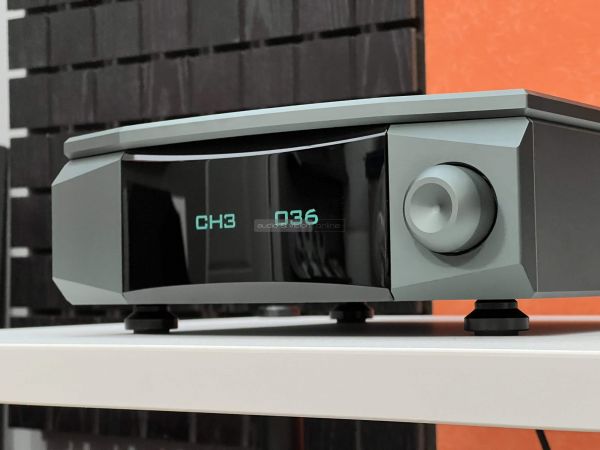 A Kinki Studio elég szűkszavú, a CHoco Sound talán még ennél is, de legalább megúsztuk a marketingszöveget, amivel mások többnyire csak a világot szeretnék megváltani. Mondjuk a fordított belső felépítést megemlíthették volna, mert erre csak akkor jöttünk rá, amikor leemeltük a fedőlapot. Pontosabban az alsó részt, mert az is némi fejtörést okozott, hogyan lássunk hozzá. A csatlakozók is nagyon minőségiek, a kapcsolódás egyértelműbb nem is lehetne, hiszen összesen 2 pár vonalszintű bemenet áll a rendelkezésünkre, meg egy XLR, phono fokozat nincs. A frontoldalon található hangerőtárcsa közepét benyomva kelt életre a készülék, végigtesztelte az összes áramkört pár másodperc alatt, amit a kijelzőn lehetett nyomon követni, majd indult a zenehallgatás. A hangerő nagyon finoman, talán túl finoman is adagolható akár a potméter, akár a távirányító által. Ez nem a kedvencünk, ha választani lehet a két megoldás közül, vagy már nagyon megszoktuk Parasoundunk egyértelműbb, gyorsabb reagálását. Mindkettővel találkozhatunk, és mindkettő szépen elfér egymás mellett a világban. Először házimozi készülékeknél találkoztunk vele, ott érthető is volt, itt viszont inkább csak elfogadjuk.